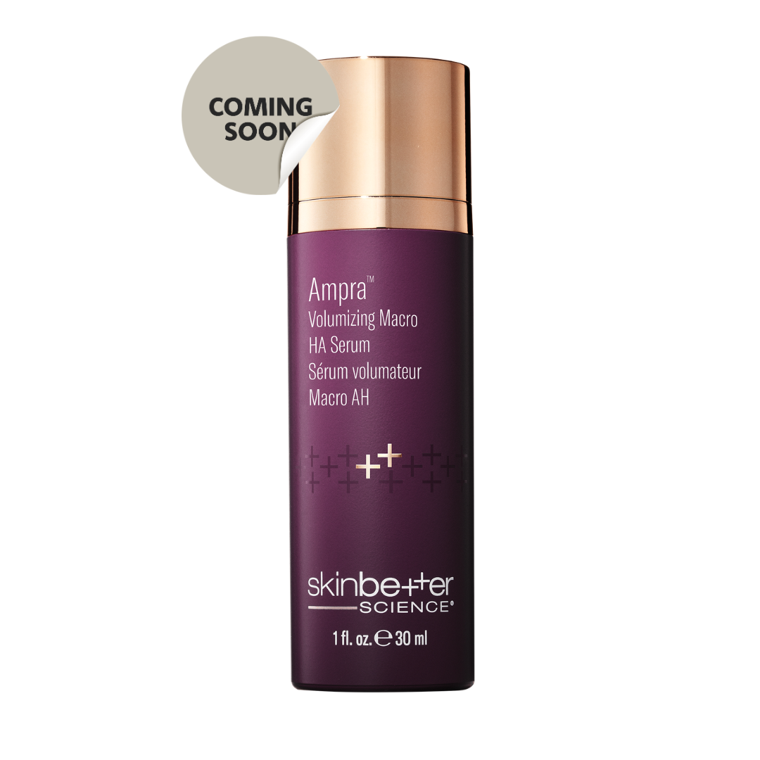 Visibly plump, smooth and contour. Engineered to target loss of volume and contour definition, the Ampra Volumizing Macro HA Serum is formulated with patented HYAsync Technology; a novel proprietary molecule where two distinct weights of Hyaluronic Acid—one macro, one mid-sized, are bonded with alpha-lipoic acid, to help deliver, sustain, and protect hyaluronic acid.